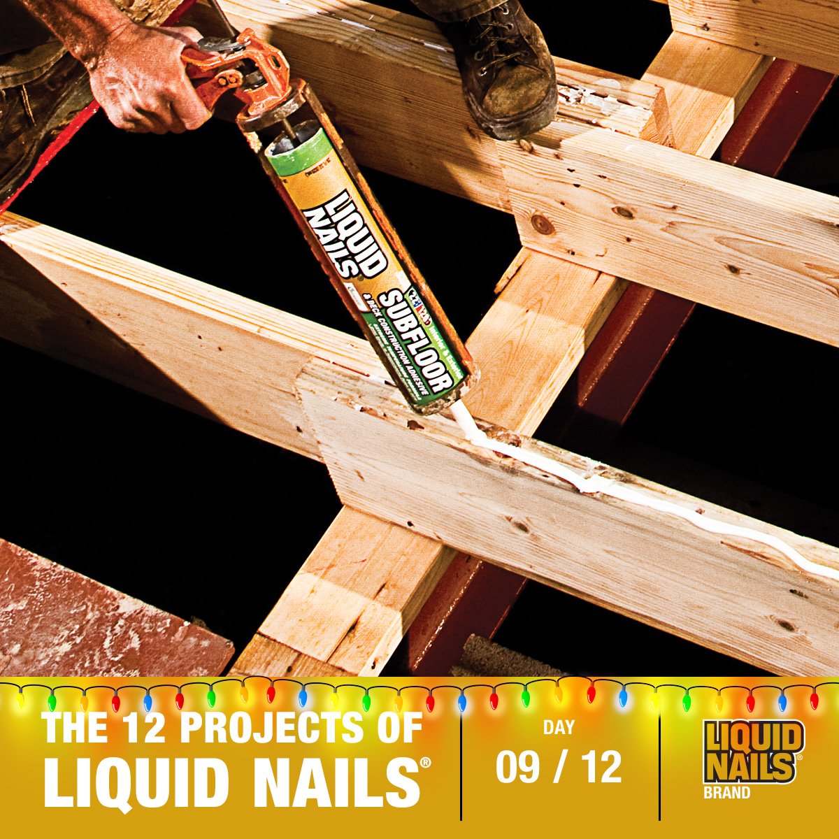 LIQUID NAILS Subfloor Deck Construction Adhesive LN-902LNP-902 permanently bonds wet frozen and treated lumber bridging gaps up to 38. Liquid Nails construction adhesive begins drying in 15 minutes and reaches maximum strength in about seven days though actual dry time varies with humidity temperature and adhered materials. Pin On Nails.